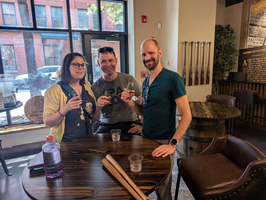 On a recommendation from a work friend, we snuck in a quick tasting at Barrels & Billets on our way to lunch, after we toured the Slugger Museum since it was right next door. Get ready to channel your inner master distiller! This unique spot is all about the art of bourbon blending. This isn’t a traditional tour of a distillery; it’s a hands-on experience that gives you the chance to become the creator.