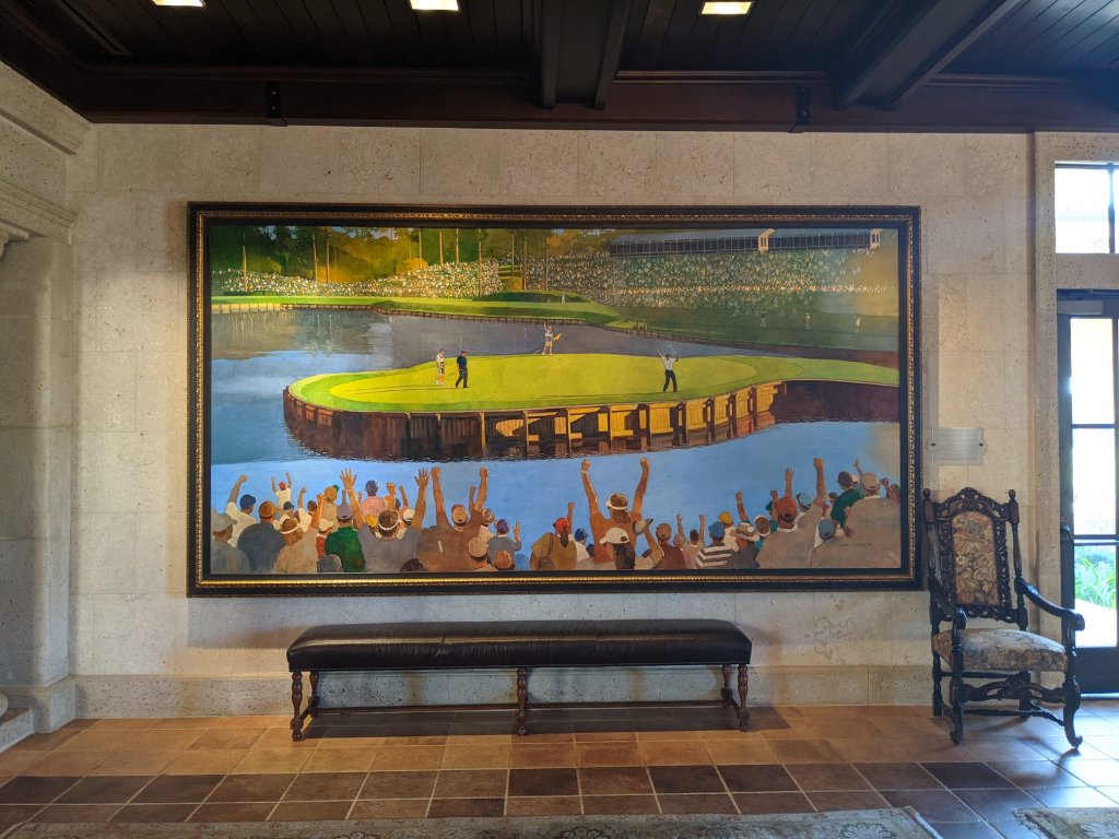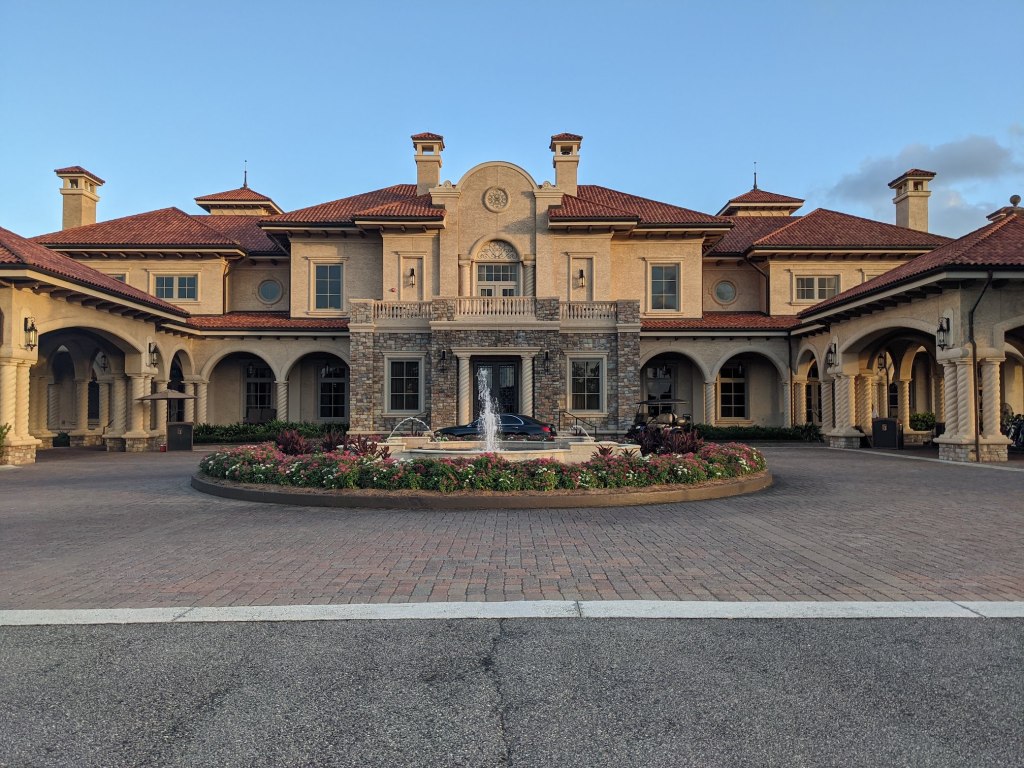 Adjacent to and affiliated with the TPC Sawgrass Golf Course, you can take a shuttle, drive a car, or follow the GPS walking down unmarked, unshaded roads for 30 minutes until you find the clubhouse. (Guess which one we did, lol I do NOT recommend this method. Take the damn shuttle.)