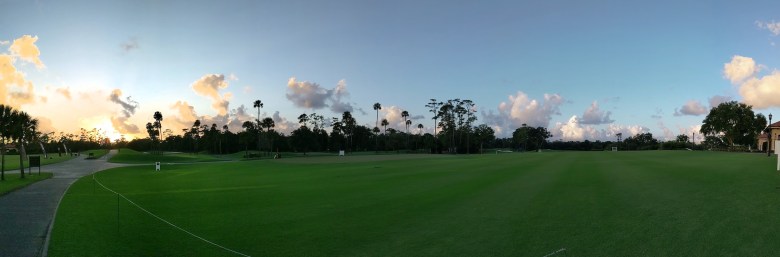 I’ve not been to a professional golf course since…. oh, gosh, I guess I was 12? In Scotland? I don’t remember it. But this was beautiful. It was peaceful and fresh-smelling. The clubhouse was exactly what I’d expect from a fancy golf course clubhouse: ornate, a tad pretentious, full of oak and large wall paintings, and very WASPy. But beautiful in its own right. The large patio out back of the restaurant, where we enjoyed a delightful dinner, looked out onto the perfectly manicured grounds, and for a brief moment during the sunset I could almost see the appeal of the sport. (ALMOST.)