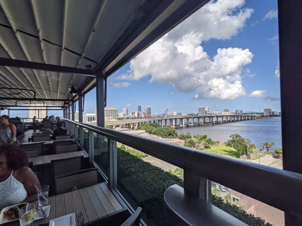 We still had a few hours to kill, so we decided to drive through downtown. I have not been to downtown Jacksonville since early 2004. It. Is. Different. The city doesn’t look familiar to me at all. So I really enjoyed driving around. We headed towards a hip little historic part of town called Five Points and found a nice rooftop bar to grab a drink and enjoy the river view. It was the perfect way to end our quick little jaunt to Jacksonville!