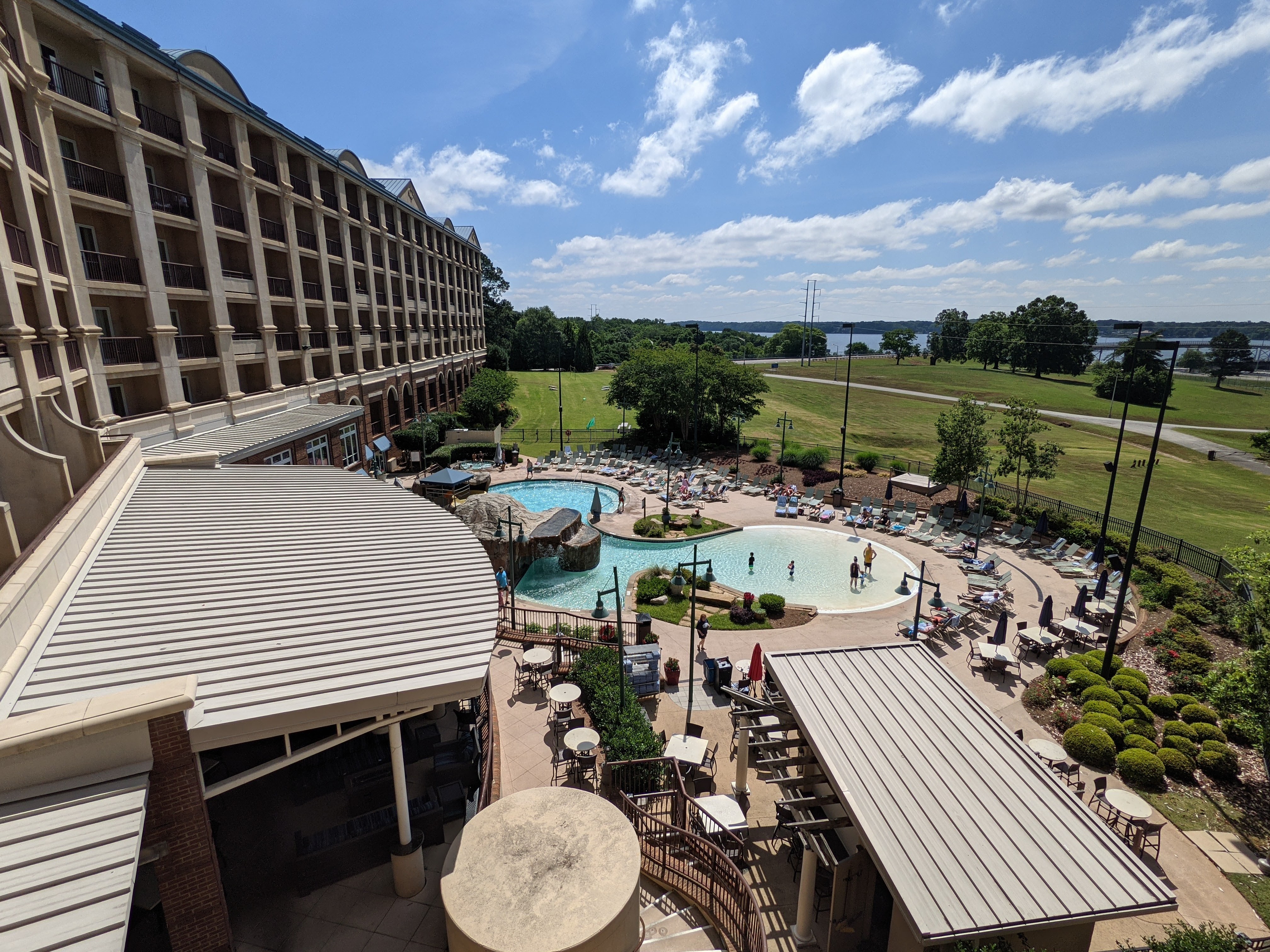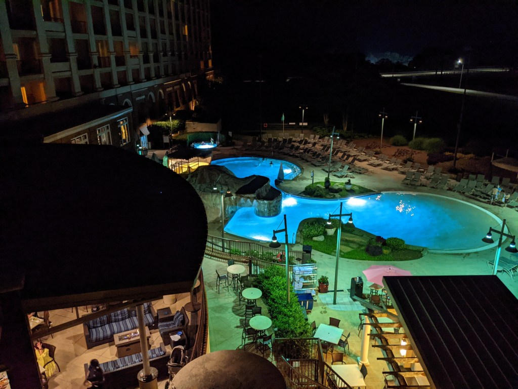 Swampers, the restaurant/bar on the main level of the hotel that offers a (mediocre) breakfast buffet and uninspired cocktails was moderately priced with perfectly fine food; nothing to write home about but it was convenient. We did splurge on a nice dinner at the 360 Grille, a rotating restaurant in the Renaissance tower, and it was worth every penny! The service, the flavors, and the views! We went early to avoid the crowds and enjoyed a leisurely meal, taking in the stunning views of the surrounding shoals area. Even if you don’t stay at the hotel, you could eat dinner here to take advantage of the aerial views!