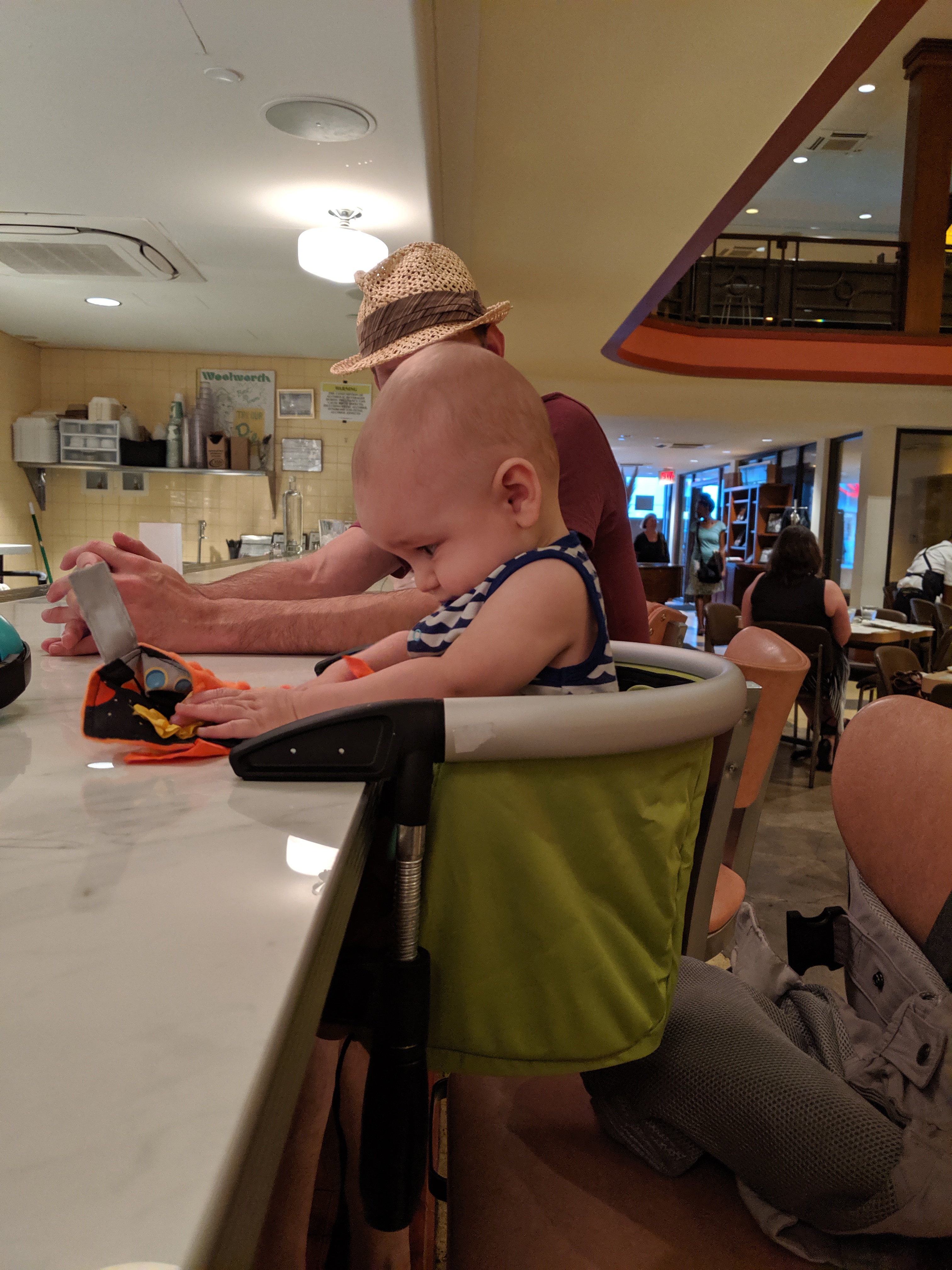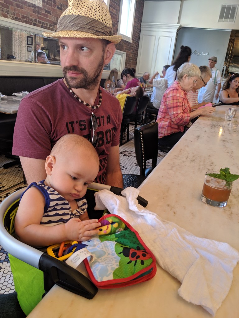 We weren’t sure how baby-friendly any of the establishments would be, so we had to be prepared for any situation. No changing station? 21 and up? No baby at the bar? Thankfully, downtown Nashville caters to families of all sizes and everywhere we ventured made it easy to have a baby. Ole Red and Stationside Kitchen even had changing tables in the men’s rooms. Having the Lobster seat, which clamps easily to almost any surface, made things even simpler. (If you need a babyshower gift, this is the one to get!) Merchants had a 20 minute wait for a booth but the bar was virtually empty, so after checking with the hostess that we could sit the baby at the bar, we clamped him in and enjoyed our lunch; the same thing happened at Woolworth on 5th at dinner time. We have always sat at the bar when given the choice and were able to continue that tradition without problem. At the other establishments, we opted for booths so we could spread out to let Skyler lie down and nap, and have an easy place for me to breastfeed him comfortably.Don’t have a schedule.