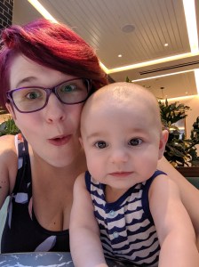 We had so much fun looking at downtown through Skyler’s eyes: the lights, the colors, the sounds, the mass amounts of people. So many new shapes and objects and noises. He was wide-eyed and alert the whole time, never wanting to close his eyes and miss something. He got tons of smiles from strangers, with dozens of people saying “Look at that baby!” to their friends, pointing at his headphones or commenting on his cuteness or noting how chill he seemed. He was interested in *everything* and never got fussy as long as we kept him moving. He didn’t want to spend too much time in any one spot; always something new to see!And *we* got to do what we wanted to do. Eat decent food, drink decent drinks, walk around and do more than just sit somewhere. Plus we got to see some weird things, meet some folks, walk down Nostalgia lane. And we laughed, a lot. It was a good day and the perfect way to celebrate Skyler’s 6 month birthday 🙂
