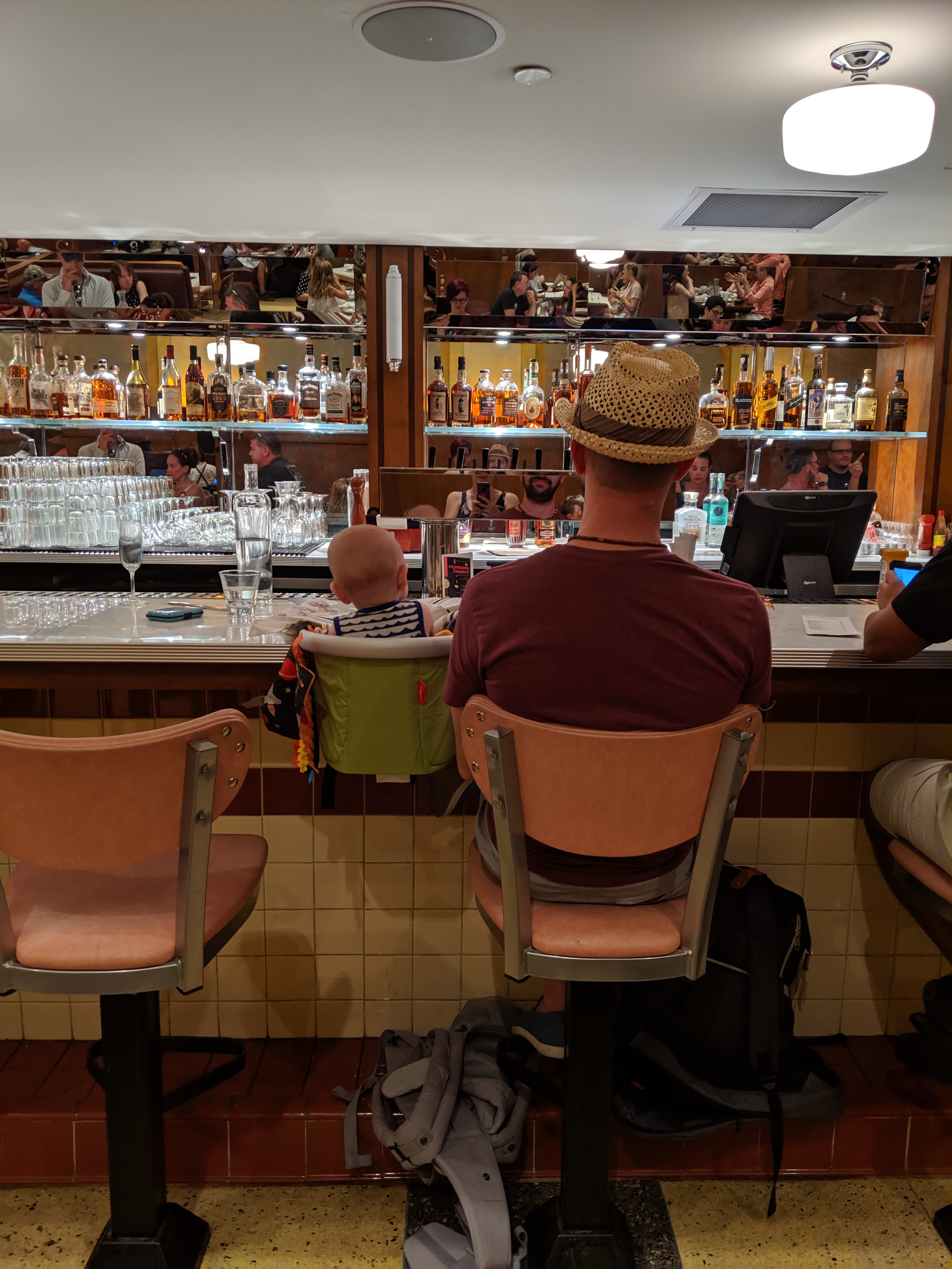 - Happy hour drinks at the Instagrammable Stateside Kitchen (inside the Dream hotel). The staff here were super friendly and helpful, and Skyler got in a nice short nap on the booth.