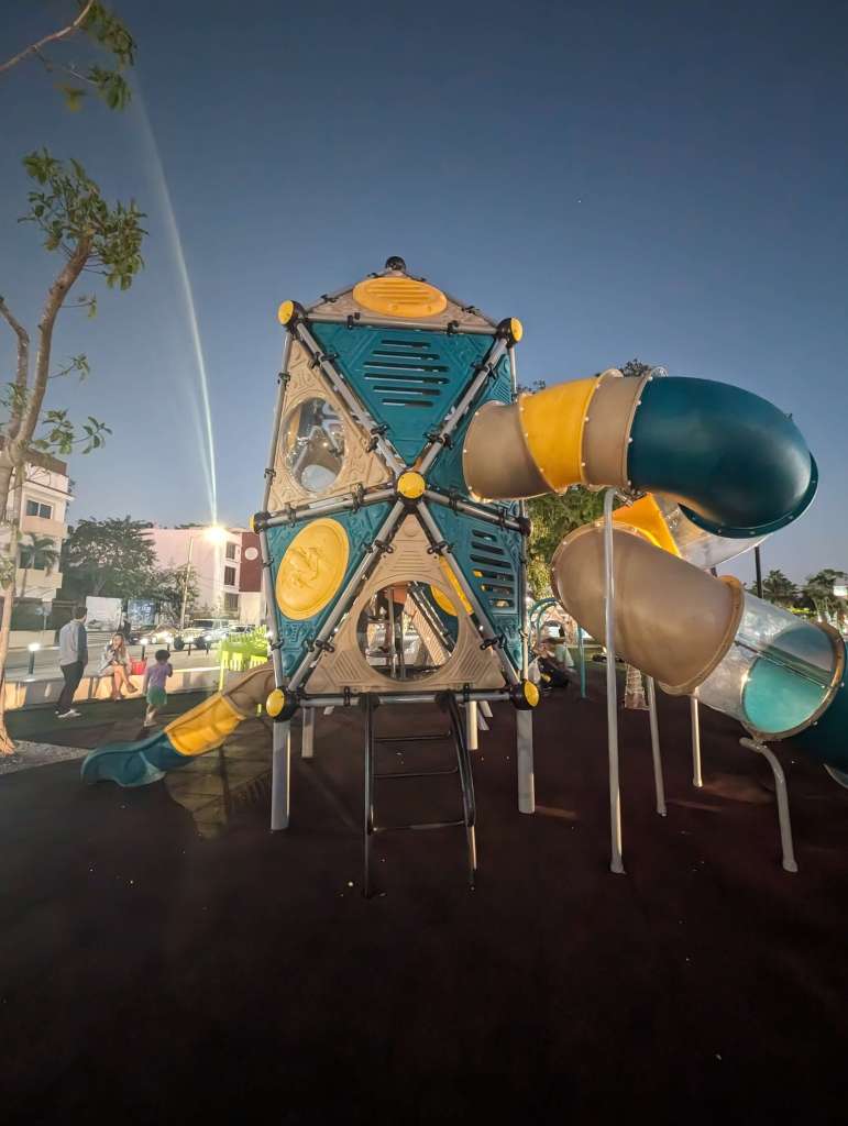 The Palacio Municipal (City Hall) is one of my favorite spots in Playa del Carmen. This massive public square (renovated in 2023) regularly hosts events like food festivals, concerts, and makers markets. The surrounding public space includes fountains and commemorative sculptures, a small amphitheater, a dog park, adult exercise equipment, and TWO playgrounds with inclusive, accessible equipment. We have spent MANY hours at this plaza.