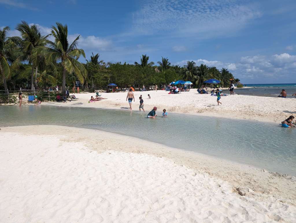 If you’re feeling a little adventurous and have an easy way to get there, I highly recommend checking out Punta Esmeralda. A stunning large white sandy beach with free facilities, tables with umbrellas, and lots of shaded hangout spots, this beach features a fresh-water cenote that creates a mini river for everyone to play in. It’s definitely more of a locals spot than for tourists (we heard little to no English during our weeknight visit) and is so peaceful.
