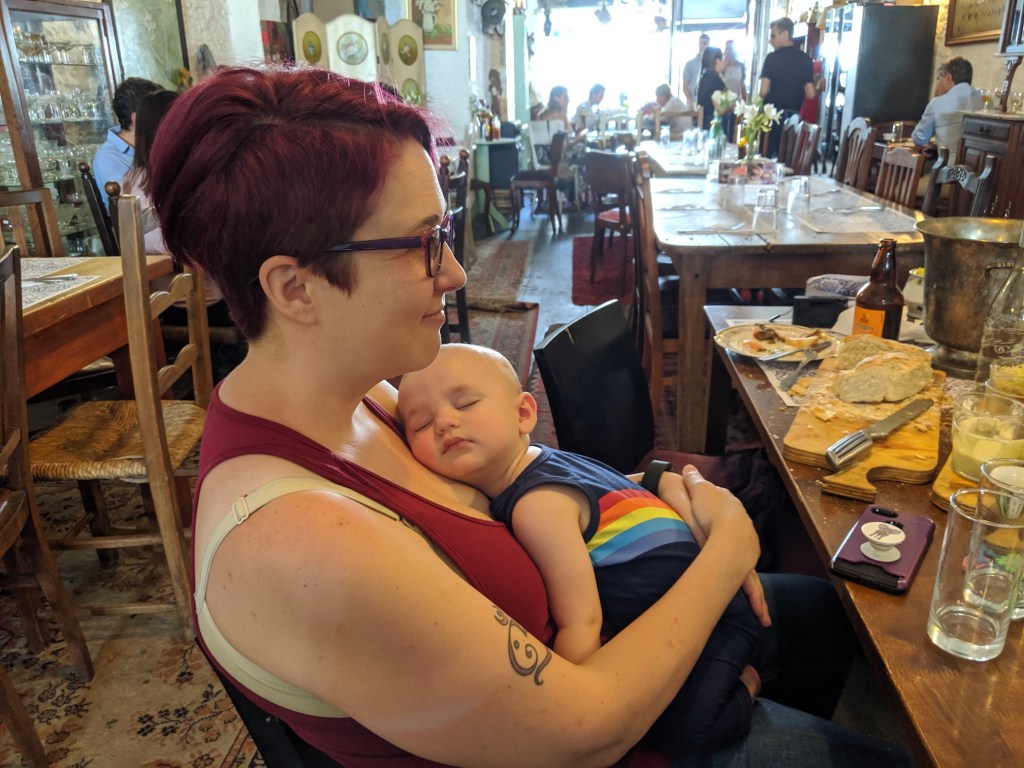 We were all hungry when we got off the ship, so we had a quick bite to eat at a hip little place called Sin Pretensiones. Wonderful people, a nice little spot for a respite from the heat – and for Skyler to sneak in a quick nap!