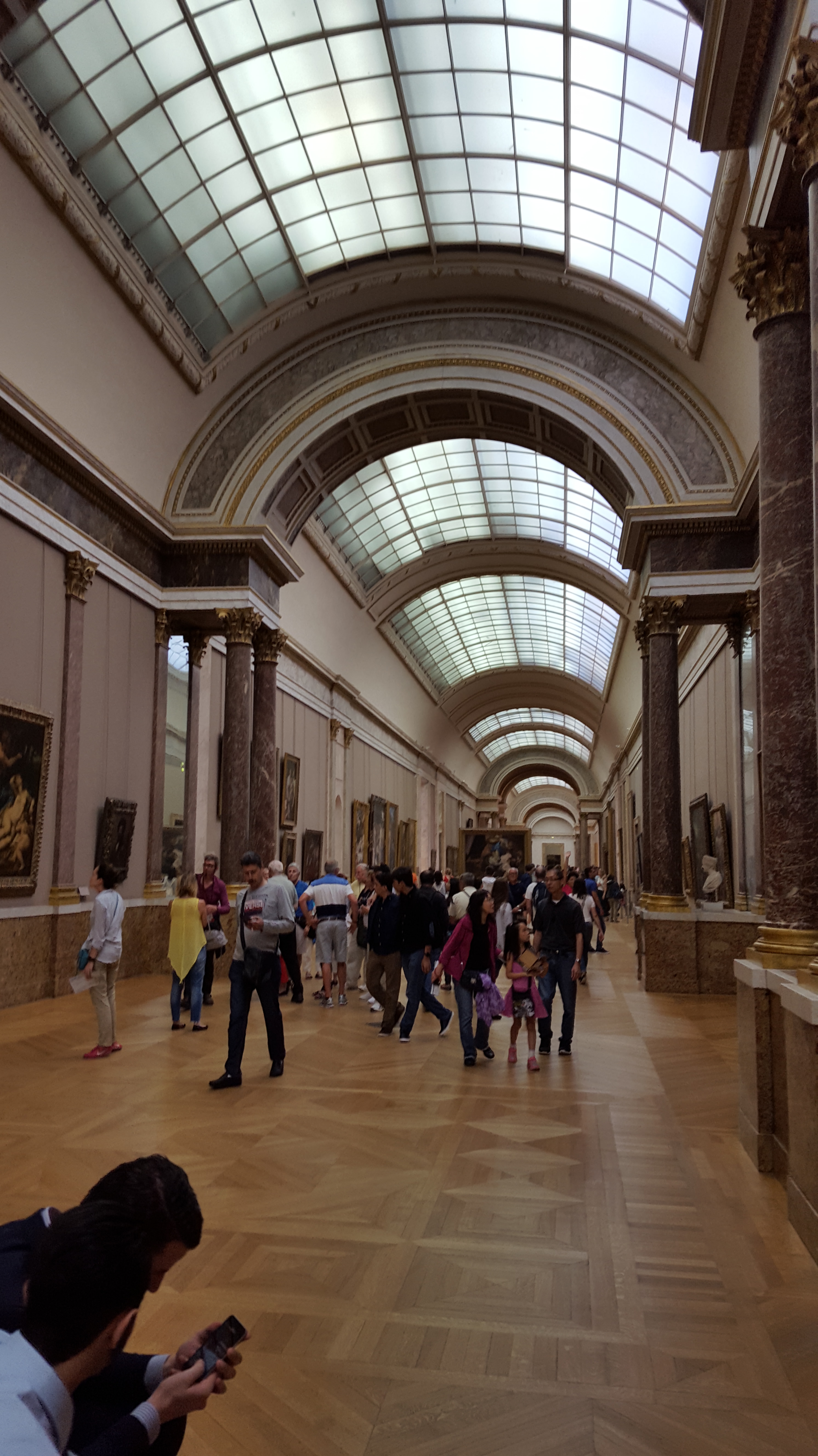 The one super touristy thing we did do was spontaneously visit the Louvre. I hadn’t planned on us going to any museums only because I assumed they would all be insanely crowded. But on our walking tour of the 1st, I take him by the Louvre so he can at least see the grandeur of the building itself and the famous pyramid at the entrance. When we get there, and see there’s no line, we assume it must be a trick. “Let’s peek down in the lobby and see if there’s a long line down there.” Nada. We walk right up to the kiosk, and decide on the spot to buy the two 15 euro tickets. That’s the benefit of not having any plans for the day.
