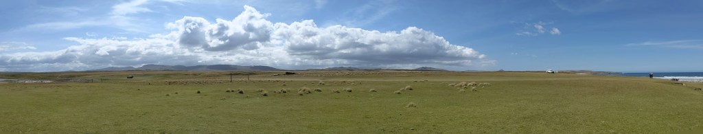 We had booked the excursion through the cruise company. We were on our way to see 2 of those species at Bluff Cove, a privately owned sheep farm where three varieties of penguins live: 1200 breeding pairs of Gentoos, 15 pairs of Kings, and an unspecified number of Magellanic.