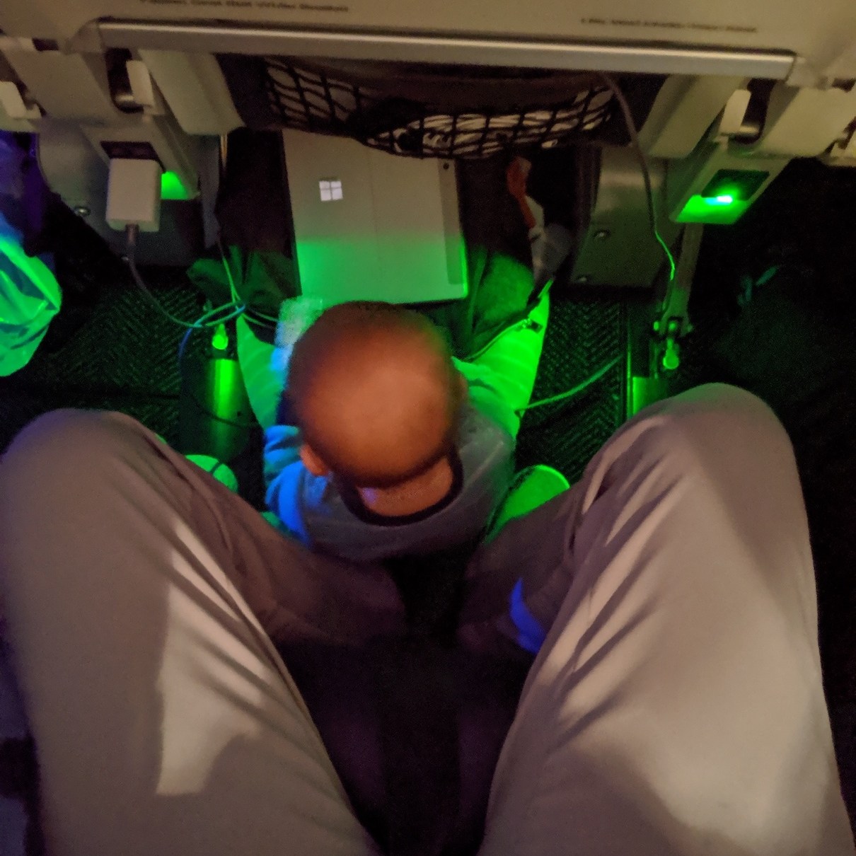 We had already flown with Skyler on two short domestic trips — Las Vegas and Florida — but had no idea how he would fare on an overnight international flight. He actually did worse on the first flight to Houston! (Though “worse” is relative; he was still very well-behaved.) My parents flew first class on both flights, and we flew in the bulkhead, giving us extra legroom (and more space for Skyler to play). We had booked a bassinet for the long flight, but ended up not using it. He slept soundly in the empty seat in our row. (Though neither of us got any sleep, which I had expected.) He was well-behaved while awake, entertaining himself easily and handing smiles out to other passengers. This kid had no idea he was on an airplane.