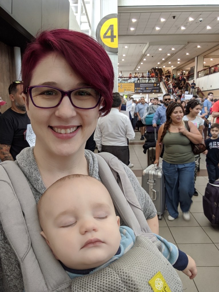 Our flight arrived in Chile more than 30 minutes early! Upon arrival in Santiago, we would have to go through customs and immigration. My last immigration experience took over 90 minutes (entering London) and everything I’d read online said the Santiago airport was known for a slow process. We were all expecting a long, hot patience-testing line. But as we were snaking through the ends of the roped off queue, two separate people approached us to tell us to go to another line. “Please ma’am, go here with the baby.” Families with small children (along with the pregnant, elderly, and handicapped) are considered persons of priority, so we got to skip the line. We were through immigration in less than ten minutes!