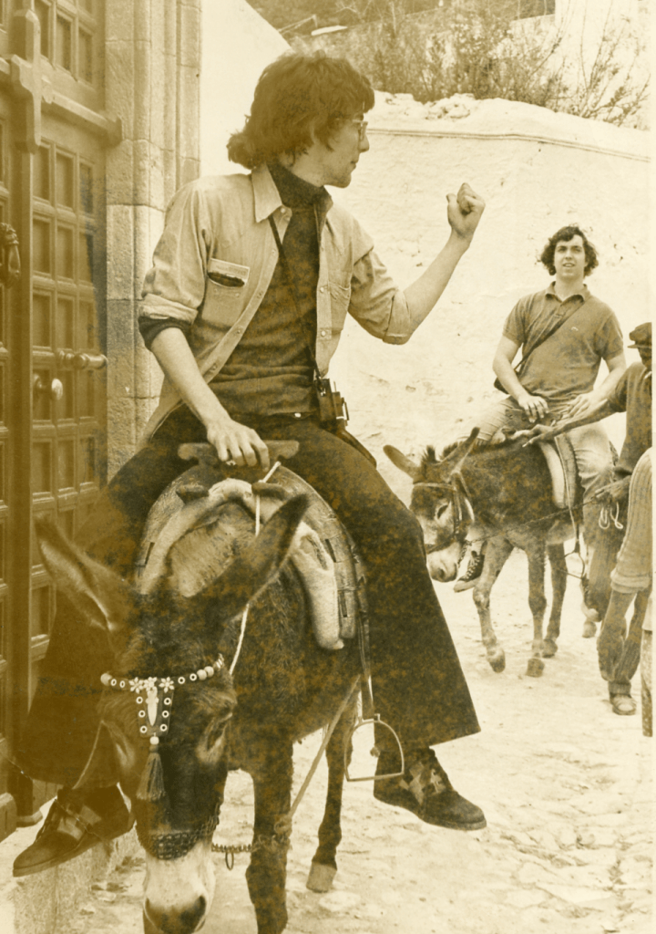 So we climbed the few steps of the donkey stand and got in line behind a few other tourists. Justin went first, handing over his 10 euros and climbing on his saddle. One of the donkey men shouted a command, and the donkey started walking up the path. Okay, so these donkeys were pros. They knew what they were doing.