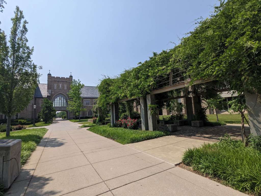 I attended 4 universities throughout the 5.5 years that I was in college. (Don’t even ask me how many credits I had when I graduated…. With one B.A.) And not a single one had a gorgeous college campus. You know what I mean, the ones you see in the movies, the Ivy League schools with tree-lined sidewalks, covered in autumn leaves, groups of co-eds lounging on the vast lawns, the old brick and stone buildings. My schools were not like that. Which is maybe why I enjoy exploring those styles of campuses when I get the chance.